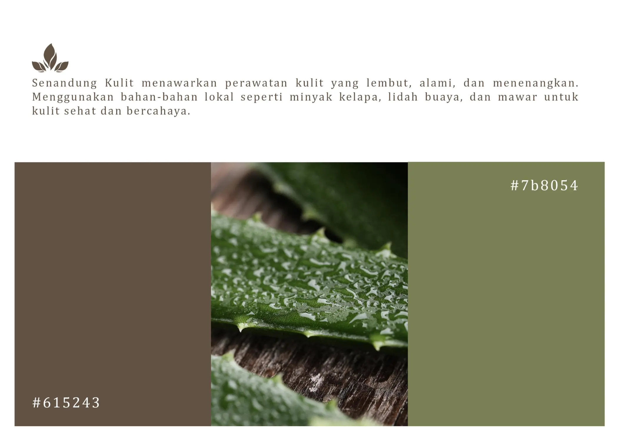 Senandung Kulit menawarkan perawatan kulit yang lembut, alami, dan menenangkan. Menggunakan bahan-bahan lokal seperti minyak kelapa, lidah buaya, dan mawar untuk kulit sehat dan bercahaya,